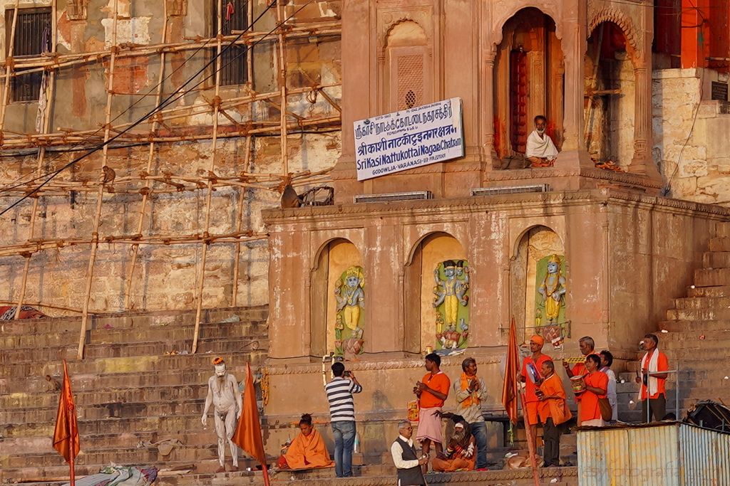 Sí, muchos ancianos vienen a morir aquí y las cremaciones son reales. Pero esta es sólo una parte de la realidad. Porque Benarés es una ciudad que bulle de vida, de actividad a todas horas, del amanecer al anochecer. Lo más de 3 millones de residentes comparten las calles y las orillas del Ganges con todo el que llega hasta aquí. Turistas, peregrinos, creyentes y no creyentes, curiosos y buscavidas abarrotan las calles del centro. Y por supuesto los ghats, las escalinatas a orillas del Ganges, para rezar, cantar, pasear, fotografiar, purificarse, peregrinar y morir.