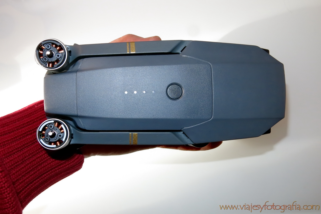 El Mavic se pone en marcha pulsando dos veces el botón de encendido que se encuentra en la parte superior de la batería. Estas son de 13.05 voltios y 3830 mAh y se cargan en una hora y media. DJI asegura que en condiciones de vuelo estático y sin viento duran unos 27 minutos. En condiciones de vuelo real doy las gracias cuando llegan a 25 minutos.