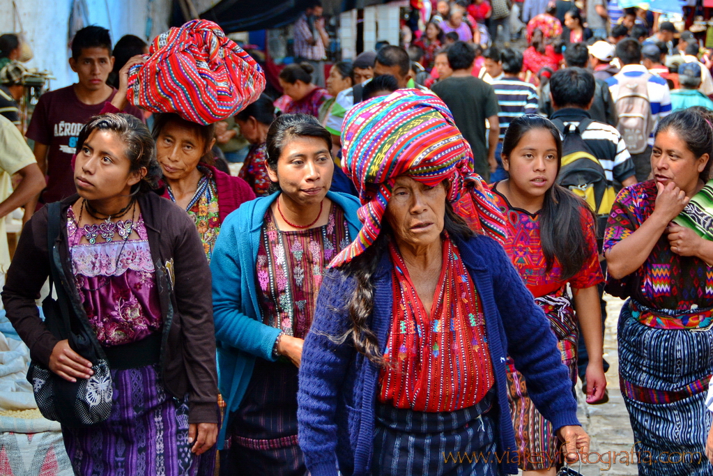 El mercado está en plena actividad de montaje de puestos y acarreo de mercancías. Tras tomar un desayuno a base de huevos con queso y frijoles con café, ya estoy preparado para todo. El pueblo hierve con la actividad de las distintas etnias indígenas que lucen sus vestimentas multicolores, todas decoradas con múltiples motivos naturales: las mujeres sus huipiles y blusas, los hombres pantalones y camisas bordadas, y sombrero.