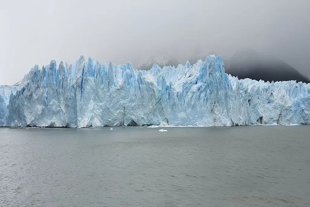 El glaciar Perito Moreno asombra nada más verlo. Esa gran legua de hielo de tonalidades azulada con su frente de 4 kilómetros y sus paredes de más de 70 m. de alto, conforman una vista hipnótica, fascinante, única. Aquí la pequeñez del ser humano se hace evidente ante una naturaleza inmensa que aquí nos sobrepasa.