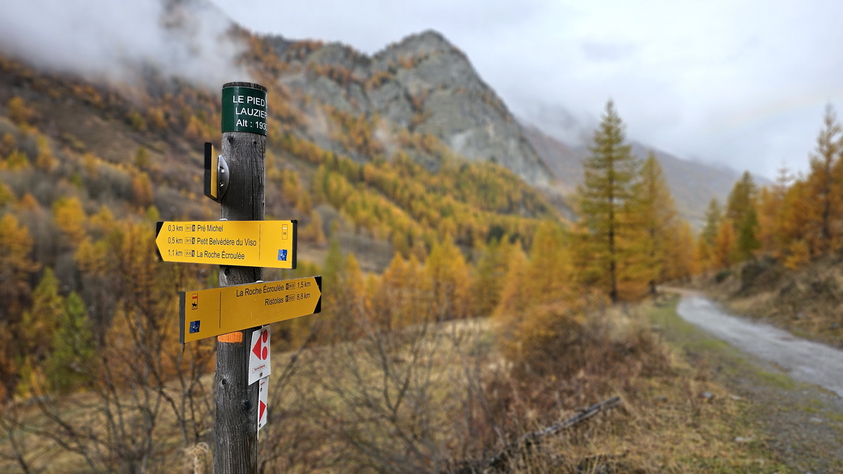 Voy a proponerte varias rutas y rincones que considero imprescindibles en Queyras y Ristolas si lo que buscas son fotografías memorables de otoño. Son rutas de dificultad media o fáciles que no te llevarán mas de 3-4 horas de caminata. Así que carga agua y provisiones para comer en el campo en tu mochila, y adelante.