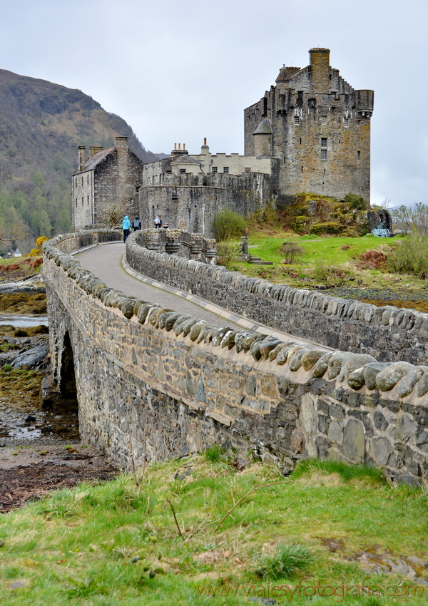 Desde arriba la perspectiva es realmente hermosa. Pero en tierra el estacionamiento junto al castillo es un hervidero de coches y turistas. Consigo aparcar con unas bonitas vistas mientras la llovizna y la niebla vuelven más mística todavía la imagen de Eilean Donan reflejada en las tranquilas aguas del lago. Tras las primeras fotografías toca averiguar si merece la pena pagar las 7,5 libras que cuesta la entrada. Así que me pongo en el acceso al puente y pregunto a algunas de las personas que van saliendo. Hay opiniones variadas, pero ninguna entusiasta: el castillo es pequeño, está muy renovado, no está mal, es caro para lo que puedes ver… Conclusión: me doy cuenta de que el castillo de Eilean Donan es un estupendo decorado así que decido no entrar y quedarme en el exterior disfrutando del maravilloso paisaje.