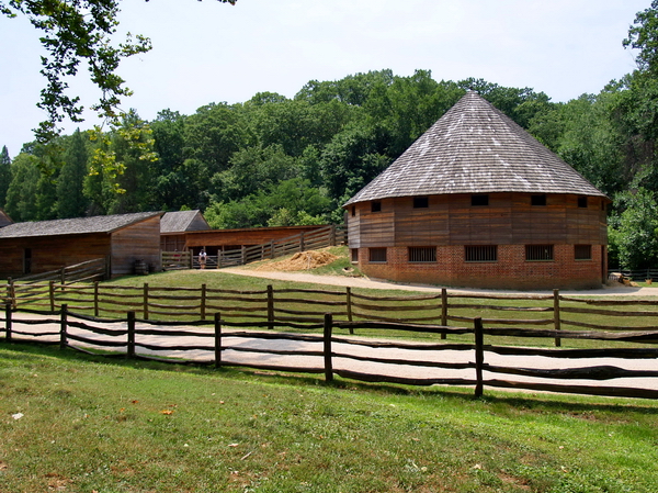 En una zona llana cercana al río hay una recreación de lo que debía ser la granja en su época de esplendor. No faltan sus vallados, sus cultivos, sus almacenes de paja y grano y sus casitas para los esclavos. Pero sin esclavos, menos mal. Por las distintas secciones de la granja veremos a figurantes vestidos como granjeros de la época que hablan por el móvil mientras aparentan acarrear grano o hacer alguna cosa. Evidentemente no encontraréis a figurantes negros que hagan de esclavos.