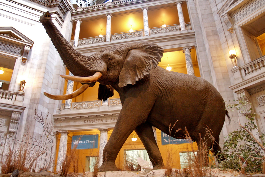 A estas alturas los pies estarán echando humo, y esto no acaba más que empezar. El siguiente asalto museístico lo dirigiremos contra otra de las joyas de la corona de la Smithsonian: el National Museum of Natural History. Como museo de ciencias de la Naturaleza su colección de más de 120 millones de objetos está dedicada a facilitar la comprensión de nuestro entorno natural. Y también de la forma en la que el ser humano interactúa con el medio que le rodea y sus consecuencias de una manera muy didáctica. Aunque no es tan grande como los de Nueva York o Londres, este museo condensa de una forma más accesible y eficaz parte de los conocimientos que tenemos sobre el entorno físico de nuestro planeta. Además de las formas de vida que se han desarrollado a lo largo de su historia conocida. Las maravillas del Mundo están esperando a ser descubiertas bajo la cúpula central de este edificio de estilo neoclásico. Es este un lugar para asombrarse y volver a ser niño otra vez, para dejarnos llevar por la curiosidad y la sorpresa. Lo peor del museo son las hordas de escolares que recorren sus salas y sus exposiciones cada día. Su ruidosa presencia apenas deja al visitante ocasional observar con atención las magníficas colecciones que atesoran estos muros.