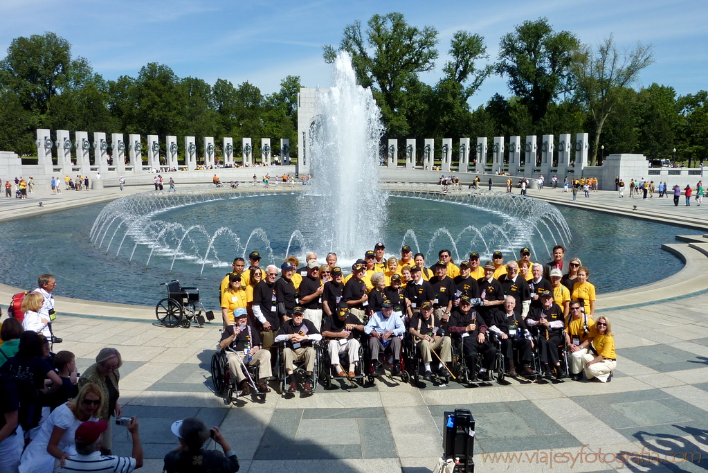 El primero que encontramos es el Memorial a los caídos de la II Guerra Mundial, the WWII Memorial. Este gran memorial ocupa uno de los extremos de esa enorme lámina de agua o reflecting pool de unos 700 m. de largo, que llega hasta el Lincoln Memorial. La verdad es que sobrecoge ver como la gente se acerca a los ancianos supervivientes de aquella conflagración para darles las gracias más de 60 años después. Ya sea cojeando o en sillas de ruedas estos últimos testigos de una época que ya queda muy atrás todavía son saludados y reverenciados por desconocidos. Son los últimos protagonistas de un pasado que elevó a los USA como referente moral de una generación.