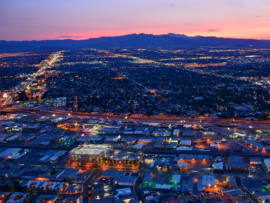 Atardece en Las Vegas. Las luces de neón brillan y parpadean y la ciudad parece despertar del letargo del día como si esperara este momento para mostrarse en todo su esplendor. Y amig@s ¡qué derroche y qué esplendor! Las calles se iluminan con los colores de los neones, los hoteles-casino resplandecen y todos y cada uno de los restaurantes, bares, salas de juego, casinos y discotecas intentan llamar la atención de sus potenciales clientes con un despliegue luminoso sin igual.